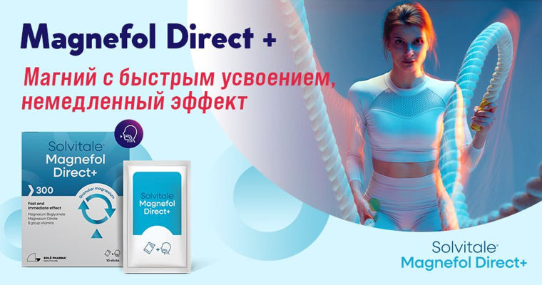 Почему Magnefol Direct + уникален?Magnefol Direct + сочетает бисглицинат магния, цитрат магния, фолиевую кислоту и витамины группы B в сбалансированной формуле, разработанной для поддержки нервной и мышечной систем. Продукт содержит 300 мг чистого магния, полученного из форм с высокой биодоступностью, что обеспечивает более эффективное усвоение организмом.Отличительной особенностью является форма приема — растворимый порошок для рассасывания под языком. Это позволяет быстрое всасывание, без полного прохождения через пищеварительную систему, что означает более быстрый эффект и повышенную переносимость, в том числе для людей с чувствительностью желудка.Реальные преимущества, подтверждённые формулойБисглицинат магния считается одной из самых эффективных форм магния благодаря тому, как он усваивается в организме. В сочетании с цитратом магния и витаминами группы B, Magnefol Direct + действует быстро и эффективно на основные симптомы, связанные со стрессом и усталостью.Основные преимущества:Высокая степень усвоения: благодаря связи с глицином бисглицинат магния усваивается легче по сравнению с другими формами и эффективно поступает в кровь.Хорошая переносимость для ЖКТ: значительно сниженный риск желудочного дискомфорта, раздражения слизистой или диареи.Быстрый эффект: высокая биодоступность обеспечивает быстрое воздействие на нервную систему, помогая снизить усталость и стресс.Поддержка нервной системы и ментального здоровья: способствует уменьшению тревожности и психоэмоционального напряжения, положительно влияя на общее эмоциональное состояние.Улучшение качества сна: способствует расслаблению мышц и нервной системы, помогая сделать сон более глубоким и восстановительным.Профилактика мышечных судорог: эффективно снижает риск судорог и спазмов, подходит для активных людей и тех, кто занимается спортом.Поддержка сердечно-сосудистой системы: способствует поддержанию нормального артериального давления и правильной работы сердца.Формула делает Magnefol Direct + подходящим решением как для людей с интенсивным ритмом жизни, так и для тех, кто хочет предотвратить дефицит магния в долгосрочной перспективе.Практичный выбор для современного образа жизниПростота применения и хорошая переносимость делают Magnefol Direct + легким для включения в ежедневный рацион. Удобный формат и отсутствие выраженных побочных эффектов отвечают современным требованиям, где эффективность и комфорт имеют решающее значение.Magnefol Direct + можно приобрести в аптеках или онлайн — со скидкой 20% и бесплатной доставкой на сайте: www.nateka.mdПростой шаг к большему запасу энергии, внутреннему балансу и устойчивости к стрессу, день за днем.